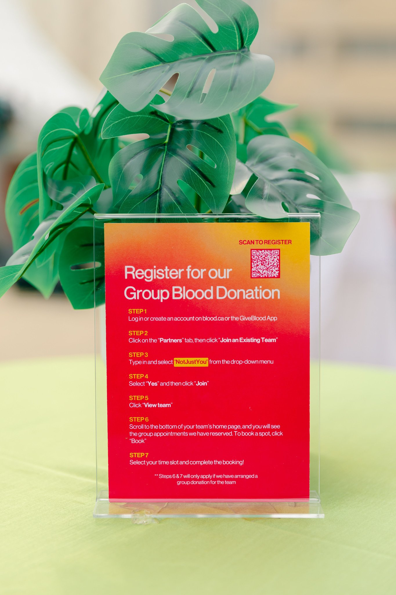 This year’s Kickback spotlighted the importance of blood donation, featuring a moving message from Gift Okwa, a regular blood donor and proud member of NotJustYou’s Canadian Blood Services Partners for Life team. Gift shared his personal journey of donating blood regularly over the past 8 years, inspiring attendees to see blood donation as an accessible and life-saving act of service. His story helped energize the room and encouraged many guests to register for our upcoming group blood donation.